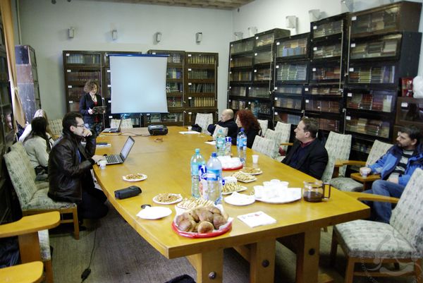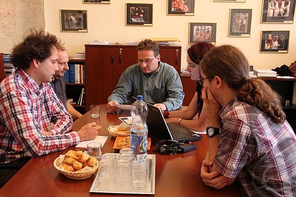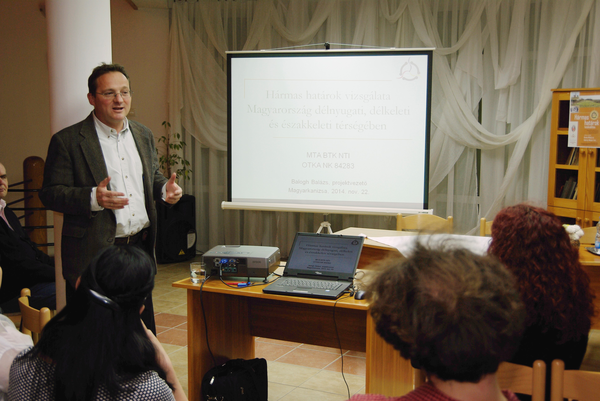 Műhelymunka Magyarkanizsán. Balogh Balázs projektvezető a kutatás célkitűzésiet és eddigi eredményeit ismertette. Fényképezte: Szilágyi Levente. |