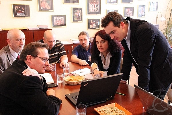 Műhelymunka az MTA BTK Néprajztudományi Kutatóintézetében. Fényképezte Szilágyi Zsolt. |