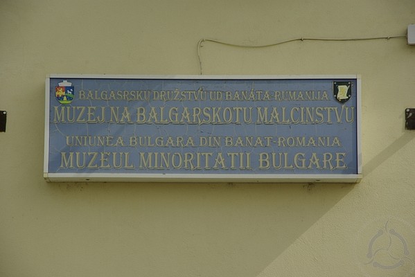 Az óbesenyői bolgár múzeum kétnyelvű táblája. Óbesenyő, 2014. Fényképezte: Szilágyi Levente. |