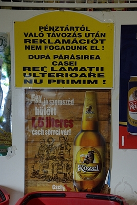 Kétnyelvű felirat egy csengersimai boltban. Csengersima, 2013. Fényképezte: Szilágyi Levente. |