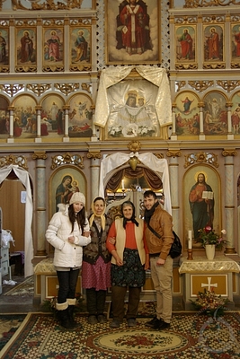 A kutatásban részt vevő miskolci egyetemi hallgatók adatközlők társaságában. Nagypeleske, 2013. Fényképezte: Szilágyi Levente. |